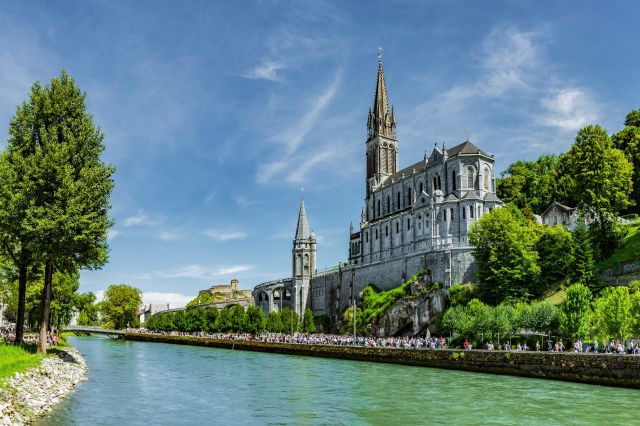 Uno de los lugares de peregrinación católica más importantes del mundo. Lourdes se hizo famoso en 1858, después de que Bernadette Soubirous afirmara haber tenido visiones de la Virgen María en la Gruta de Massabielle.