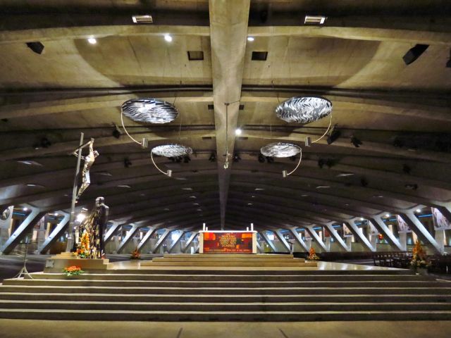 Construida en 1958 con motivo del centenario de las apariciones. Casi completamente subterránea, fue diseñada para no alterar el paisaje mientras acogía a grandes multitudes.