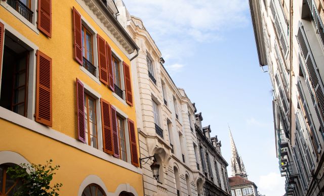La plaza principal de Pau, que conecta el centro histórico con el Boulevard des Pyrénées. Con el paso del tiempo, se transformó en una animada zona urbana y comercial.